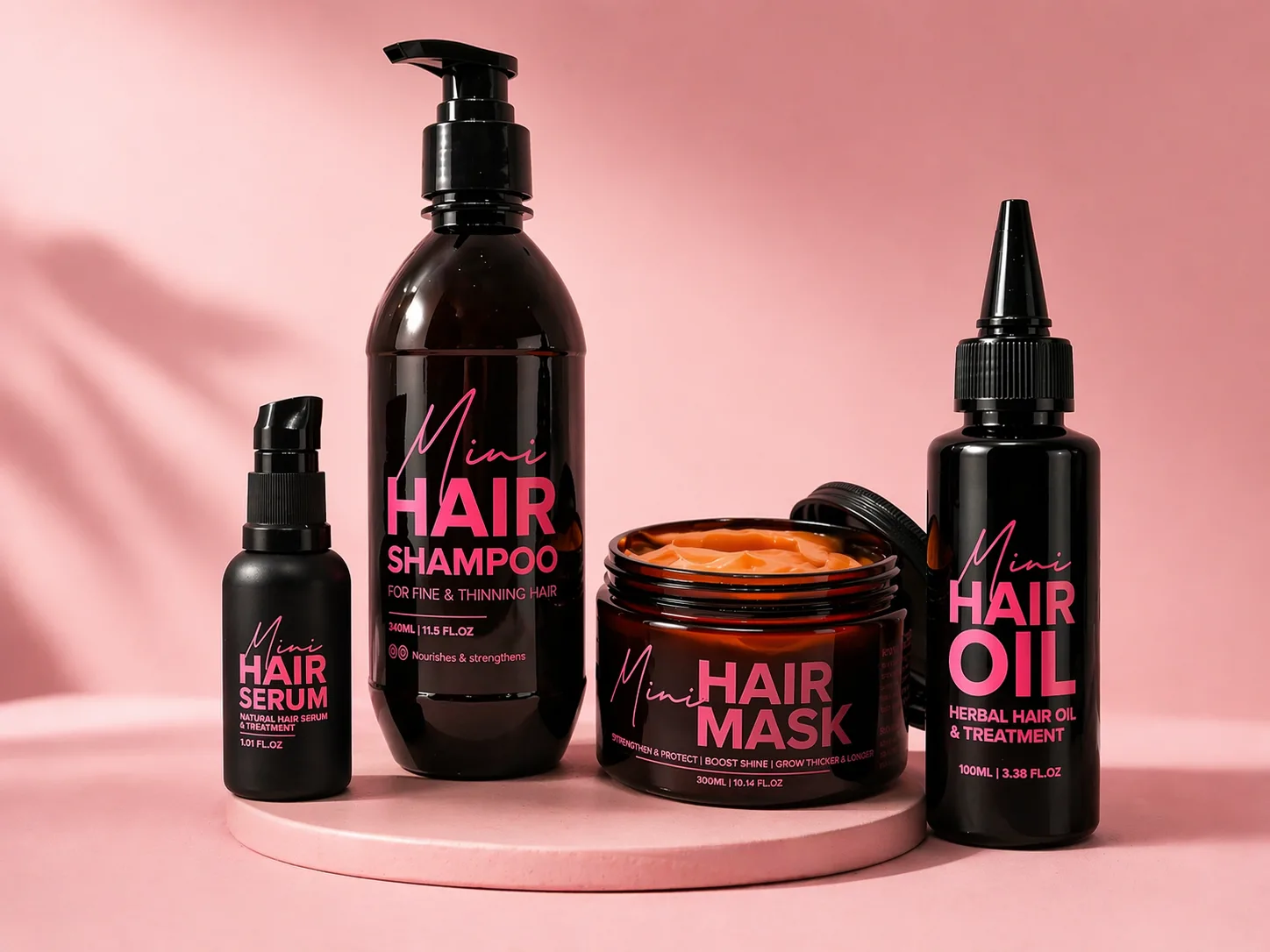 • Mini Hair Shampoo – cleanses without stripping, keeps scalp balanced